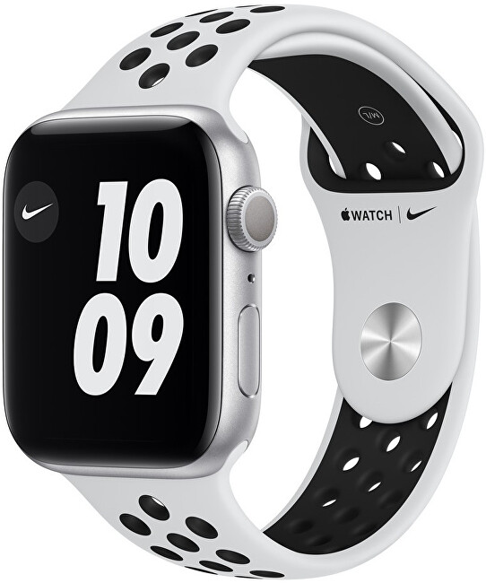 Apple Watch Nike Series 6 44mm stříbrný hliník s platinovým/černým sportovním řemínkem Nike