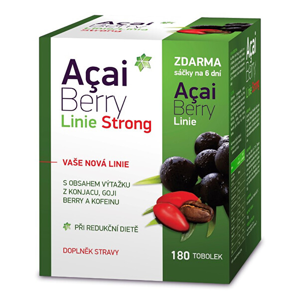 Výrobce: Biomedica Acai Berry Linie Strong je doplněk stravy s obsahem glukomananu (konjac), extraktů z Acai berry, Goji berry a kofeinu. Glukomanan je ve vodě rozpustná vláknina, která napomáhá snížení hmotnosti v rámci nízkoenergetické diety. Skladová