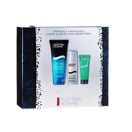 Výrobce: Biotherm Sada obsahuje: Revitalizační sprchový gel na tělo a vlasy (Instant Revitalizing Shower Gel) 200 ml Pěna na holení (Shaving Foam) 50 ml Hydratační gel pro muže pro normální až smíšenou pleť Homme Aquapower (Oligo Thermal Care Ultra