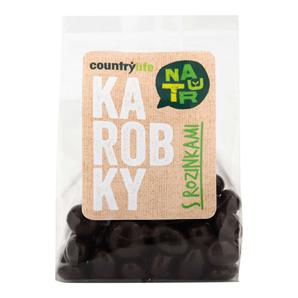 Výrobce: Country Life Sušené plody vinné révy v polevě z karobu. Mají výraznou sladkou chuť. Karobky jsou vynikající náhražkou běžných pamlsků. Návod k přípravě: k přímé spotřebě. Kalorická hodnota/energie (na 100g): 1854 kJ/442 kcal. Tuky: 19.4
