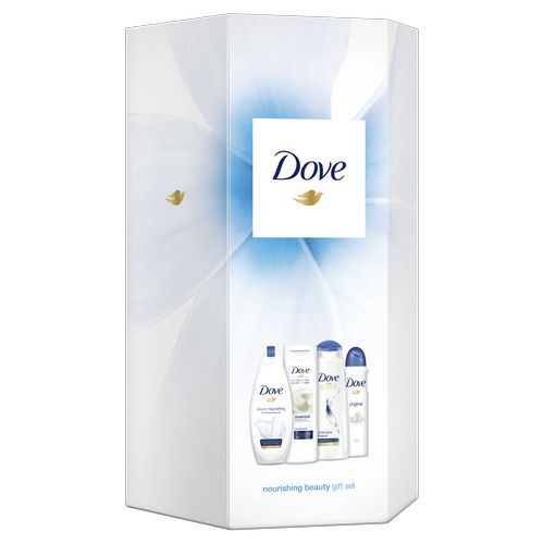 Výrobce: Dove Sada obsahuje: Antiperspirant ve spreji Original 150 ml Vyživující sprchový gel Deeply Nourishing (Nourishing Shower Gel) 250 ml Vyživující tělové mléko Essential Nourishment (Body Milk) 250 ml Šampon pro poškozené vlasy Nutritive
