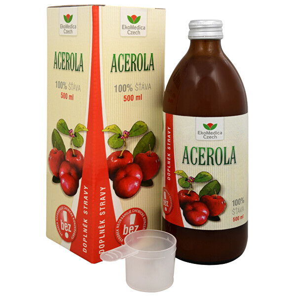 Výrobce: EkoMedica Czech 100% šťáva je získávána z plodů aceroly nejmodernějším způsobem výroby. Produkt je stabilizován pouze šetrnou pasterizací, neobsahuje chemické konzervanty. Šťáva je proto určena co nejširšímu spektrum konzumentů. Plod aceroly