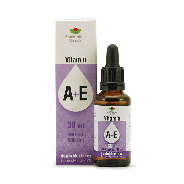 Výrobce: EkoMedica Czech vitamíny A + E v kapkách stabilizovány směsí tokoferolů ze slunečnicového oleje. Vitamín A podporuje imunitní system, pomáhá udržovat normální metabolismus železa, podílí se na procesu specializace buněk. Přispívá k udržován