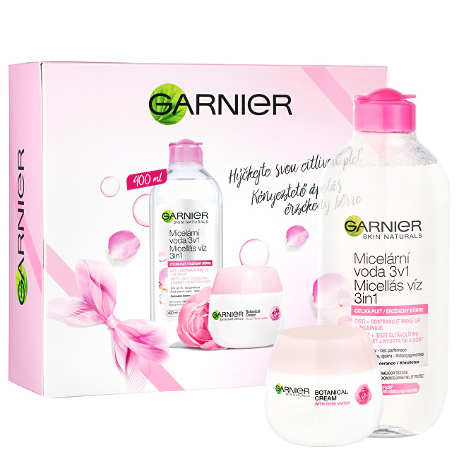 Výrobce: Garnier Sada obsahuje: Micelární voda pro citlivou pleť Skin Active (Micellar Cleansig Water) 400 ml Hydratační krém s růžovou vodou pro suchou a citlivou pleť Botanical Cream 50 ml