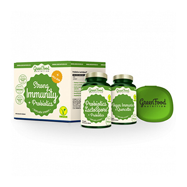 Výrobce: GreenFood Nutrition Pillbox obsahuje: Vegan Immunix + Quercetin 60 kapslí a Probiotika LactoSpore® 60 kapslí Strong Immunity & Probiotics vyhledávají lidé orientovaní na: - Podporu imunitního systému- Potlačení projevu stresu- Podporu organismu při vi