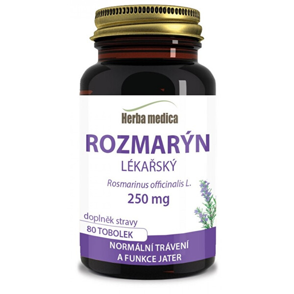 Výrobce: HerbaMedica Rozmarýn lékařský nazývaný též rozmarýna lékařská (Rosmarinus officinalis) je stale zelená rostlina z čeledi hluchavkovitých, keřovitého vzrůstu. Pro normální trávení, funkci jater a pročištění.