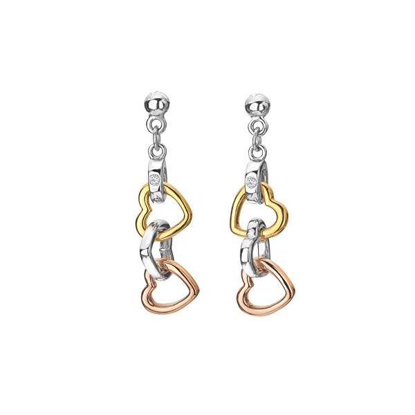 Hot Diamonds Půvabné stříbrné tricolor náušnice s diamanty Trio DE703