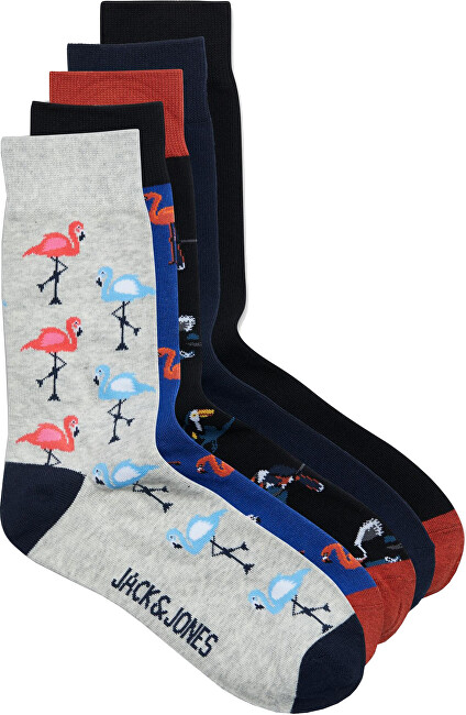 Jack&Jones 5 PACK - pánské ponožky JACSUMMER FLAMINGO 12185834 Light Grey Melange Navy blazer - Galaxy blue - Navy blazer - Black.