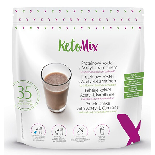 Výrobce: KetoMix Proteinový koktejl s Acetyl-L-karnitinem s příchutí čokoláda-banán je snadnou, rychlou a chutnou volbou proteinového jídla, které vás zasytí a zároveň dodá vašemu tělu kvalitní bílkoviny, vlákninu, minerální látky i vitamíny.
