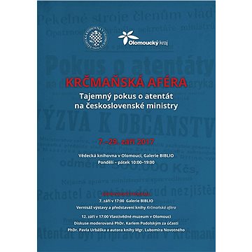 Kniha Krčmaňská aféra: Tajemný pokus o atentát na československé ministry:Kniha připomíná kauzu věnovanou událostem dnes známým pod názvy krčmaňská aféra či krabičkový atentát, která po několik měsíců hýbala politickým