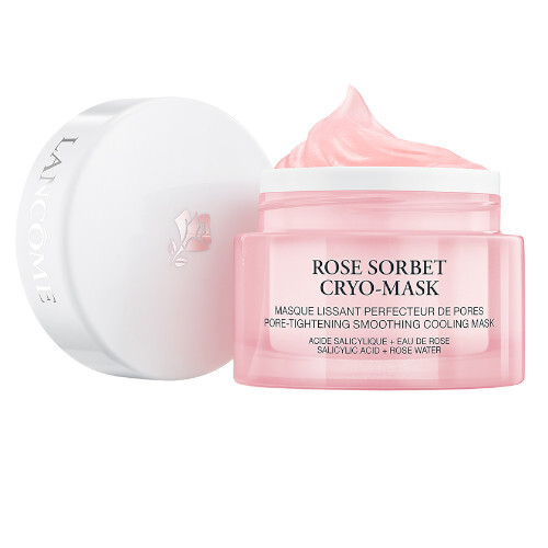 Výrobce: Lancôme Obličejová maska, inspirovaná kryoterapií, má neodolatelnou lehkou růžovou sorbetovou texturu, která chladí a zmatňuje pokožku. Vyrobeno z kyseliny salicylové, růžové vody a výtažku z lučních květů, poskytuje osvěžující pocit