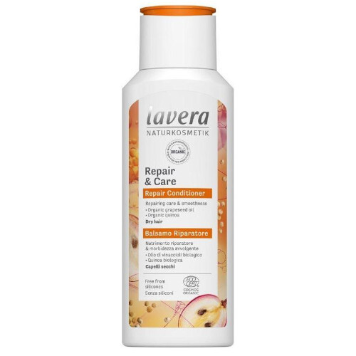 Výrobce: Lavera Kondicionér Repair & Care regeneruje vlasy pomocí hojivých extraktů z bio růží a účinným komplexem čtyř vyživujících proteinů a keratinu. Vzácné bio oleje z avokáda a z makadamiových oříšků dodají pokožce i vlasům p