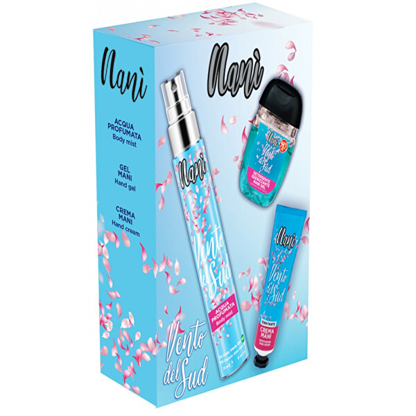 Tělový sprej Wind Of South (Body Mist) 75 ml Dezinfekční gel na ruce Wind Of South (Hand Gel) 30 ml Krém na ruce Wind Of South (Hand Cream) 30 ml Tělový sprej se svěží vůní, který má intenzivní trvání a dodává poko