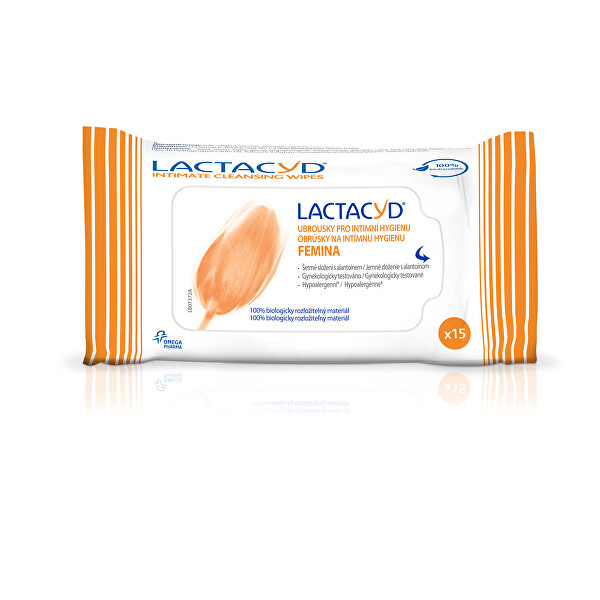 Výrobce: Omega Pharma Lactacyd ubrousky Femina jsou určeny pro intimní hygienu. Hypoalergenní ubrousky Lactacyd Femina ze 100% biologicky rozložitelného materiálu mají šetrné složení s alantoinem se zklidňujícími účinky. Dále obsahují přírodní L-kysel