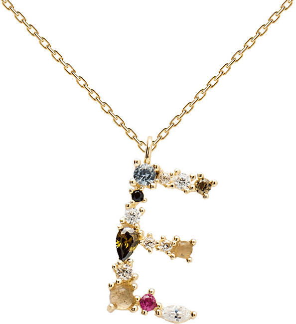 PD PAOLA Pozlacený náhrdelník ze stříbra písmeno "E" se zirkony CO01-100-U (řetízek, přívěsek).