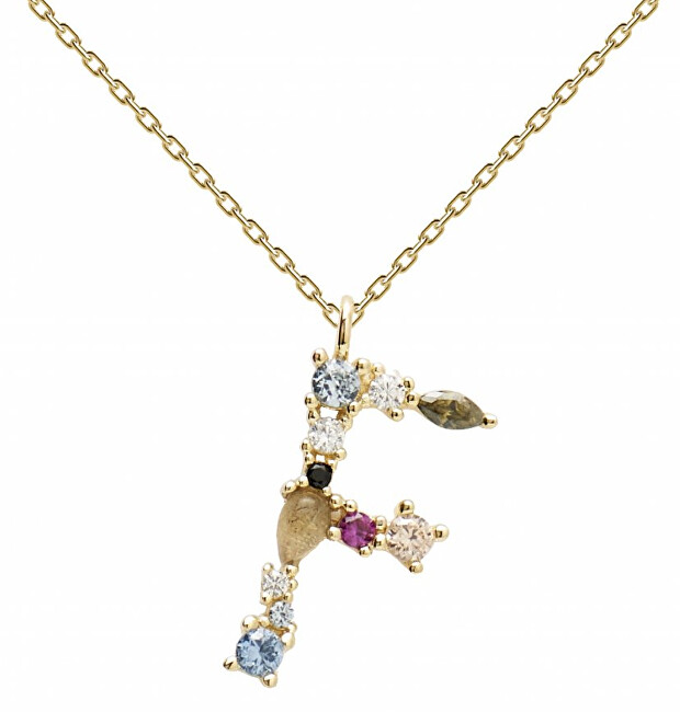 PD PAOLA Pozlacený náhrdelník ze stříbra písmeno "F" se zirkony CO01-101-U (řetízek, přívěsek)