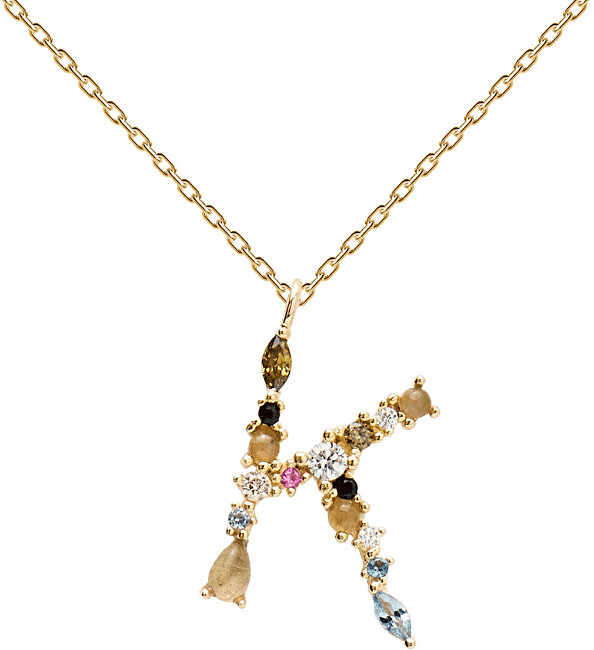 PD PAOLA Pozlacený náhrdelník ze stříbra písmeno "K" se zirkony CO01-106-U (řetízek, přívěsek).
