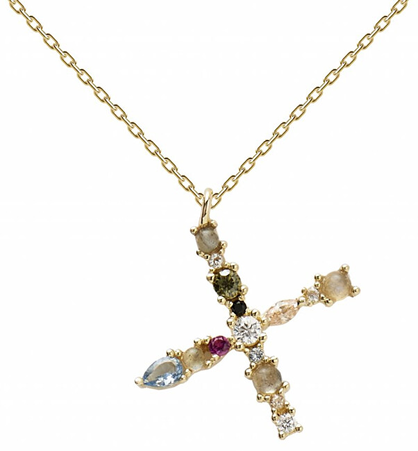 PD PAOLA Pozlacený náhrdelník ze stříbra písmeno "X" se zirkony CO01-119-U (řetízek, přívěsek).