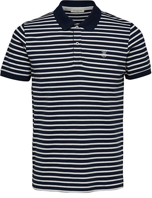 SELECTED HOMME Pánské polo triko SLHARO STRIPE SS EMBROIDERY POLO W Dark Sapphire Egret S