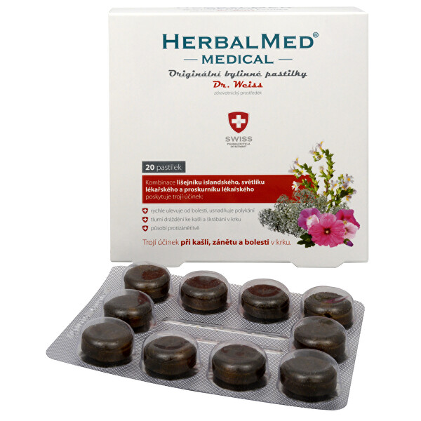 Výrobce: Simply You Herbalmed MEDICAL pastilky Dr. Weiss představují unikátní kombinaci a koncentraci extraktů z bylin, díky které mají nejvyšší přírodní účinnost. Pastilky Herbalmed MEDICAL vytváří v krku na povrchu sliznice ochranný film, který c