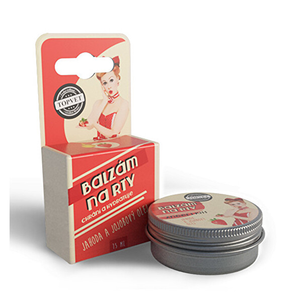 Výrobce: Topvet Jahodový balzám přináší dokonalou ochranu a péči o vaše rty. Rty budou po ošetření balzámem hebké, svěží a dlouhodobě vyživené. Balzám obsahuje vysoký podíl bambuckého másla a luxusních kosmetických olejů a vosků.