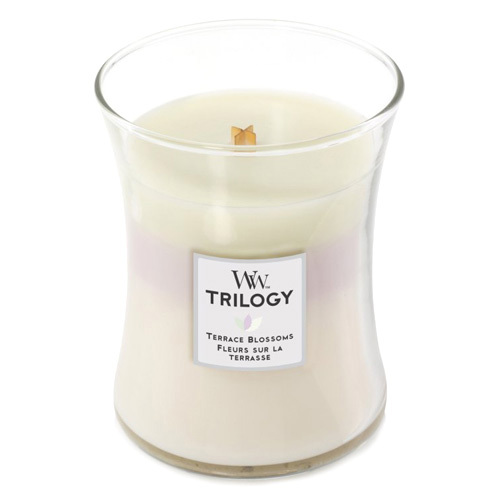 Výrobce: WoodWick Svíčka Trilogy Terrace Blossoms vám přináší vůni fíkových listů, divoké fialky a magnolie. Tato svíčka s typickým dřevěným víčkem provoní váš domov a naplní ho jemným zvukem praskajícího knotu, který podpoří atmosféru p