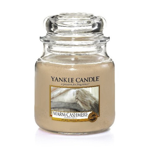 Aromatická svíčka střední Warm Cashmere v sobě skrývá vůni hřejivého kašmíru.