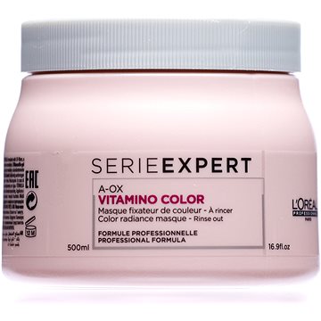 Maska na vlasy ĽORÉAL PROFESSIONNEL Serie Expert A-Ox Vitamino Color Masque 500 ml : Barvíte si vlasy, ale chcete je mít zároveň vyživené, lesklé a kvalitní? Sáhněte po antioxidační masce ĽORÉAL PROFESSIONNEL Serie Expert A-OX Vitamino Color Masque, která ochrání zářivou barvu a zároveň vlasům dopřeje hloubkovou regeneraci.
