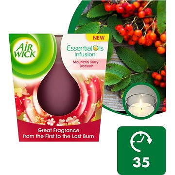 Výrobce: AIRWICK Svíčka AIR WICK Horské květy 105 g: Vytvořte si jedinečnou atmosféru se svíčkami z kolekce Airwick Essential Oil Infusion! Tato jedinečná svíčka kombinuje vůni vanilky, květin a výtažků z ovoce. Krásně provoní váš domov či kancelář, uložena je ve skleněné dóze, která zároveň plní dekorační funkci. Složení: Limonen