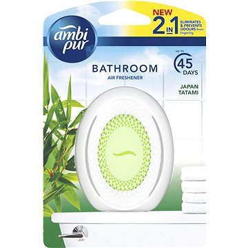 Výrobce: AMBI PUR Osvěžovač vzduchu AMBI PUR Bathroom Japan Tatami 75 ml: AMBI PUR Bathroom Japan Tatami přinese do vaší koupelny příjemnou svěží vůni. Osvěžovač odstraňuje ze vzduchu pachy a současně zabraňuje jejich usazování na měkkých površích, jako jsou ručníky, vany či sprchové závěsy. Díky jedinečné technologii Odour Clear zajistí nepřetržitou svěžest až po dobu 45 dní. Osvěžovač vzduchu navíc funguje bez nutnosti použití baterií či elektrické energie. Provoňte vaši koupelnu výjimečnou vůní pomocí AMBI PUR Bathroom. Klíčové vlastnosti osvěžovače vzduchu AMBI PUR Bathroom Japan Tatami 75 mlOsvěžovač vzduchu určený do koupelnyProvoní místnost příjemnou svěží vůníZe vzduchu odstraňuje pachyZabraňuje usazování pachů na měkkých površíchTechnologie Odour Clear zajistí nepřetržitou svěžest až po dobu 45 dníK provozu AMBI PUR Bathroom nejsou potřeba baterie či elektrická energieS jemnou vůní s decentním bylinným aroma Objem:75 ml