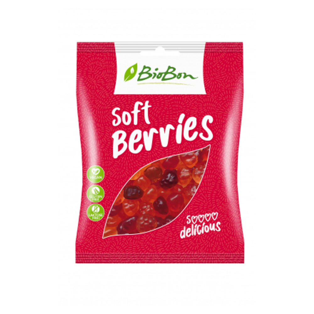 Gumové bonbony v BIO kvalitě ve tvaru různých odrůd bobulí, s vysokým podílem čerstvého ovoce, pro vegetariány a vegany.