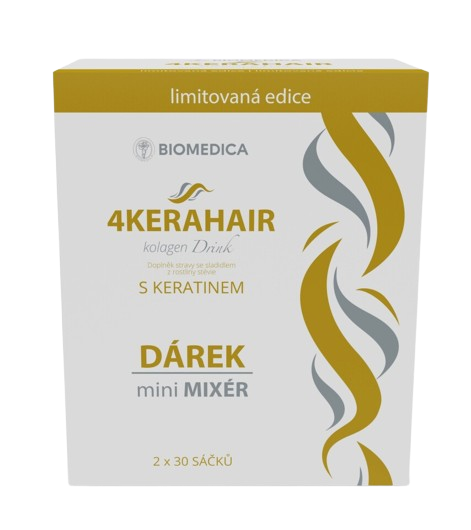 BIOMEDICA 4KERAHAIR kolagen Drink + dárek mini mixér 2 x 30 sáčků