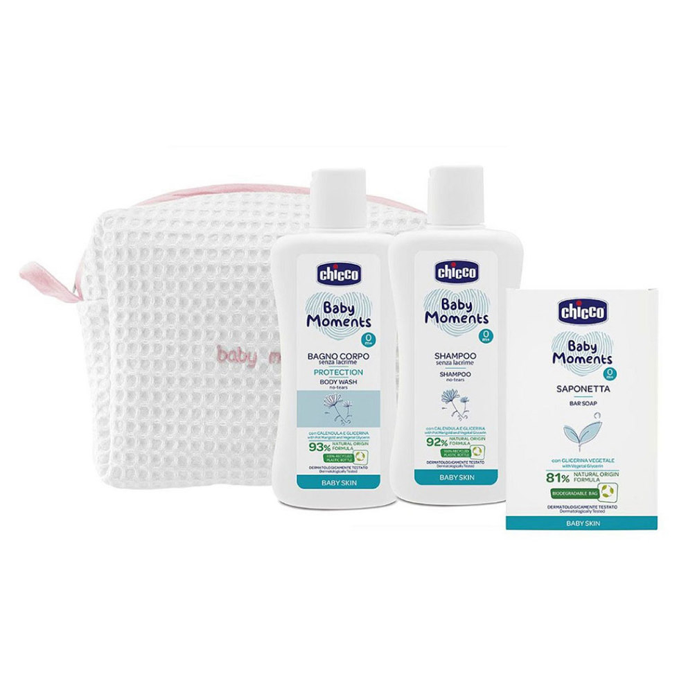 Kapsička obsahuje tři kosmetické výrobky na jemné mytí dětské pokožky, vlásků a rukou. Vhodná i jako dárek.