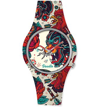Výrobce: DOODLE Hodinky DOODLE Tattoo Mood DOTA001:DOODLE Tattoo Mood DOTA001 jsou prezicní unisex hodinky, se kterými zaručeně zaujmete své okolí. Jejich základem je kulatý ciferník velikosti 39 mm, který kryje poctivé plastové sklíčko. Tento model používá ručičkový ciferník. Strojek s technologií Quartz bude vždy zárukou co nejdelší výdrže na baterii a zároveň veliké přesnosti. Řemínek tvoří silikon a dodává jim šmrnc, nikoli však na úkor pohodlí při nošení. Hodinky DOODLE přežijí stříkající vodu při šetrném mytí rukou nebo při dešti, ke sprchování nebo do vody ale vhodné nejsou. Stupeň krytí hodinek má hodnotu 30 m (3 ATM). Vybrané znaky unisex hodinek DOODLE Tattoo Mood DOTA001 Strojek s Quartz technologií běží na baterii, která má dlouhou výdrž Ciferník chrání plastové sklíčko, není snadné je poškrábat Materiálem pouzdra je silikon Řemínek tvoří silikon Vodotěsnost hodinek DOODLE: 30 m (3 ATM) Ciferník nese barvu: více barev Barva řemínku: více barev Unisex hodinky nabídnou strojek Quartz