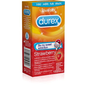 Výrobce: DUREX Kondomy DUREX Emoji Strawberry 12 ks: Kondomy Durex Emoji Strawberry s příjemnou jahodovou příchutí potěší zejména milovníky ovocných vůní. Milostným hrátkám dodávají šťávu, stimulují smysly a přinášejí oběma partnerům maximální potěšení. Unikátní tvar Easy-On s rezervoárem na konci vám umožní pohodlné a snadné nasazení prezervativu. Uvnitř krabičky naleznete smajlíky a speciální emotikony, kteří odbourají pocit trapnosti ve chvíli, když nastane čas kondomy použít. Klíčové vlastnosti kondomů Durex Emoji Strawberry? s vůní jahodČervené lubrikované prezervativyPříjemná jahodová příchuťUnikátní tvar Easy-On s rezervoárem pro snadné nasazeníSmajlíci a speciální emotikony uvnitř krabičkyPohodlí a dokonalá přilnavostZ přírodního kaučukového latexu Stimulace smyslů pomocí vůní a příchutíČervené lubrikované prezervativy vám poskytnou dokonalou přilnavost, na sobě je ani nebudete cítit. Jsou vyrobeny z vysoce kvalitního přírodního kaučukového latexu, dermatologicky a 100% elektronicky testovány. V praktickém balení jich naleznete 12 kusů. Kondomy spolehlivě chrání nejen před nežádoucím otěhotněním, ale i před pohlavními chorobami. Pro bezpečný sex a dokonalou stimulaci smyslů díky jahodové příchuti jsou kondomy Durex Emoji Strawberry tou správnou volbou.Skladování:Kondomy uchovávejte na suchém, chladném místě a chraňte před přímým slunečním světlem.