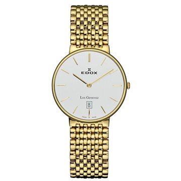Výrobce: Edox Pánské hodinky EDOX Les Genevez 27034 37J AID:EDOX Les Genevez 27034 37J AID jsou kvalitní pánské hodinky, které budou na vašem zápěstí lichotivým prvkem. Jejich základem je kulatý ciferník velikosti 39 mm, ten chrání patřičně odolné safírové sklíčko. Tento model používá ručičkové zobrazení. Spolehlivá Quartz technologie je zárukou letité výdrže na jedinou baterii, zároveň zajistí přesnost. Řemínek tvoří chirurgická ocel a dodává jim šmrnc, aniž by se snížilo pohodlí při nošení. Náramkové hodinky Edox hravě odolají stříkající vodě a běžnému dešti, ponoření do vody ale nezvládnou. Stupeň krytí hodinek je 30 m (3 ATM). Nejpodstatnější rysy pánských hodinek EDOX Les Genevez 27034 37J AID Strojek s Quartz technologií běží na baterii, která má dlouhou výdrž Jednou ze základních funkcí hodinek EDOX Les Genevez 27034 37J AID je zobrazení aktuálního data Ciferník kryje safírové sklíčko, takže se snadno nezničí Materiálem pouzdra je ocel Pro řemínek byl zvolen materiál: chirurgická ocel Vodotěsnost hodinek Edox: 30 m (3 ATM) Zbarvení ciferníku: bílá Zbarvení řemínku: zlatá Pánské hodinky nabídnou strojek Quartz