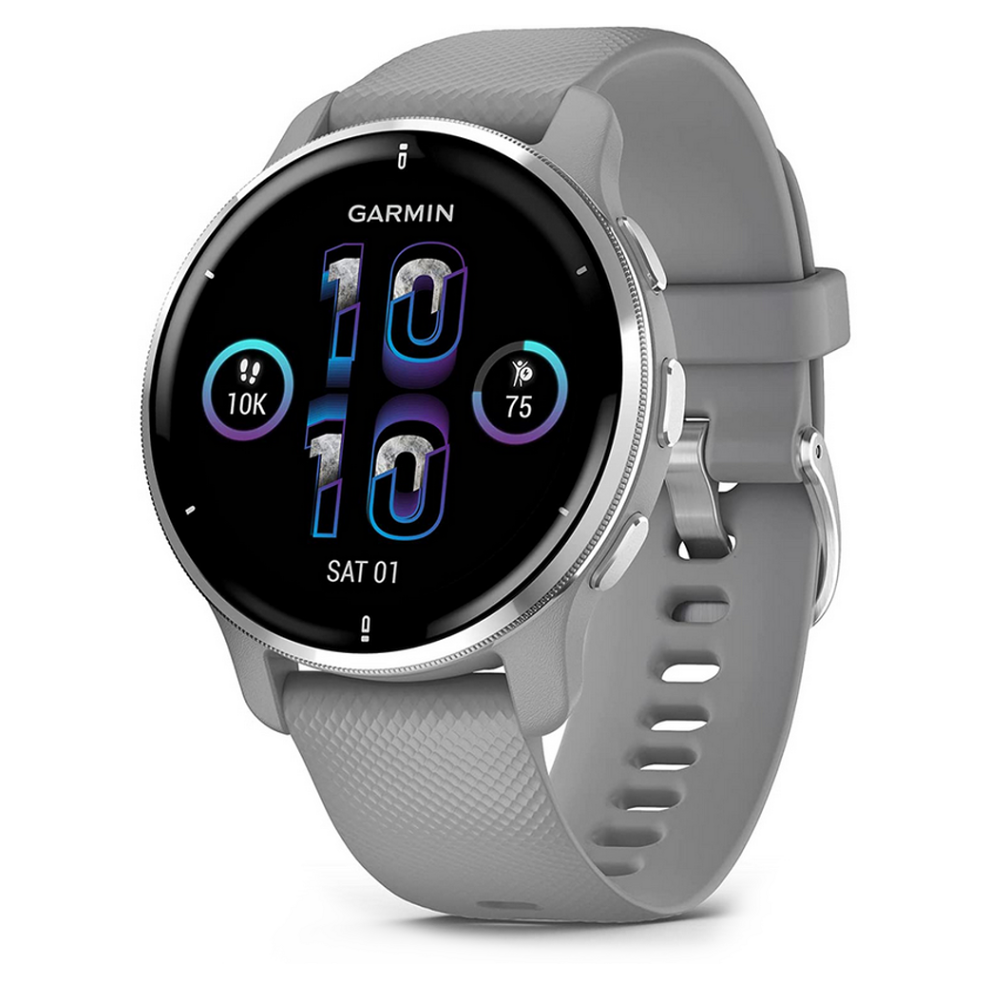 GARMIN Venu 2 Plus, nerezová luneta Silver, pouzdro Gray, silikonový řemínek sportovní hodinky