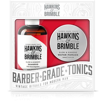 Obsahuje šampón pro muže 250 ml a pomádu na vlasy 100 ml. Šampón Hawkins & Brimble zajistí výživu vašich vlasů a s pomádou velmi rychle docílíte požadovaného účesu s mokrým vzhledem.