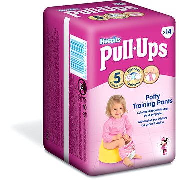 Výrobce: HUGGIES Plenkové kalhotky HUGGIES Pull Ups vel. 5 Medium - Girls (14 ks): Plenkové kalhotky HUGGIES Pull Ups jsou vhodným řešením k odnaučování plenek. Plenkové kalhotky HUGGIES Pull Ups jsou vhodným řešením k odnaučování plenek. Pull-Ups zkrátí dětem cestu ke správným hygienickým návykům. Cvičné plenkové kalhotky mají na sobě obrázky, které se ve vlhku ztratí. Batolata tak rychle porozumí, že obrázky se neztratí, když budou používat nočník.Jedná se o úspěšné vizuální učení jak odnaučit děti čůrat do plen. Vhodné pro dívky vážící 11 - 18 kg.