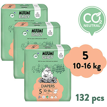 Pokud vám tedy záleží na minimální produkci odpadů, ale zároveň chcete využít výhod jednorázových plenek, značka Muumi Baby je jistě skvělou volbou.Velikost:5Pro děti:10 - 16 kgObsah balení:3 × 44 ks