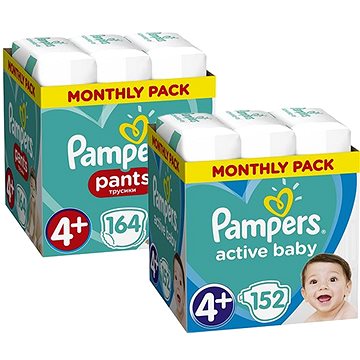 PAMPERS Pants Maxi+ vel. 4+ (164 ks) + PAMPERS Active Baby vel. 4+ Maxi (152 ks)