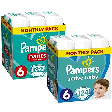 PAMPERS Pants vel. 6 (132 ks) + PAMPERS Active Baby vel. 6 Extra Large (124 ks)