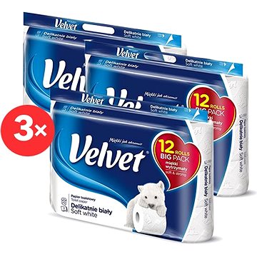 Výrobce: VELTIE Toaletní papír VELVET Delicately White (36 ks): Třívrstvý toaletní papír má hebkou strukturu, která o vás bude jemně pečovat. V jedné roli toaletního papíru je 162 útržků. Papír je třívrstvý a zachovává tak vysoký komfort při používání. Objednávat můžete po 12 rolích, které se nacházejí v jednom balení. Třívrstvý toaletní papír má hebkou strukturu, která o vás bude jemně pečovat. V jedné roli toaletního papíru je 162 útržků. Papír je třívrstvý a zachovává tak vysoký komfort při používání. Objednávat můžete po 12 rolích, které se nacházejí v jednom balení. třívrstvý162 útržkůbarva bílá