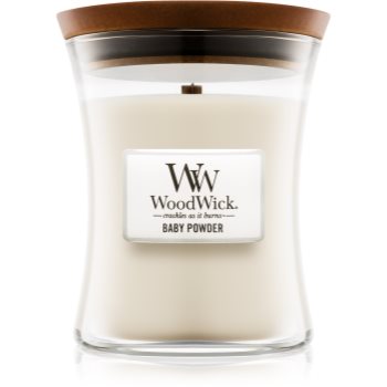 Woodwick Baby Powder vonná svíčka s dřevěným knotem 275 g